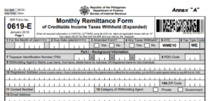 Form 0619E is the Monthly Remittance Form of Creditable Income Taxes Withheld (Expanded).